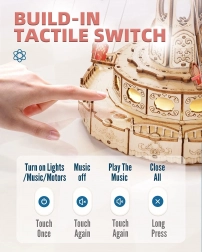 Grazie ai comandi touch è possibile controllare separatamente movimento e musica, adattando l’esperienza all’umore. La difficoltà media, circa 6 ore di montaggio e 289 pezzi in legno e metallo di qualità rendono il modello un regalo perfetto per teenager creativi e adulti. Una volta completato, diventa una decorazione di stile per mensole, studio o soggiorno.