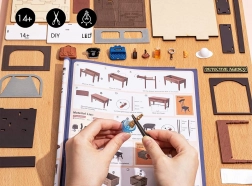 Scopri il fascino del classico giallo con elementi nostalgici: dalla macchina da scrivere retrò al telefono a disco, fino alla bacheca con indizi e all’iconico cappello da detective. Assemblerai ogni pezzo con le tue mani e, grazie all’illuminazione LED, il modello finito creerà un’atmosfera suggestiva anche dopo il tramonto.