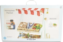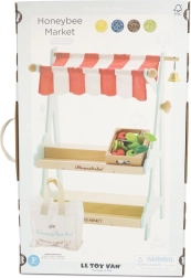 Le Toy Van Bancarella Honeybee è un prodotto popolare del marchio Le Toy Van, noto per il suo design premiato e la qualità. Questa bancarella è dotata di un baldacchino a strisce rosse e bianche, un campanello e cassette di legno con frutta. Ispira i bambini ai giochi di ruolo, che sviluppano le loro capacità sociali e creatività.