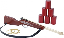 • Set completo: fucile in legno, 20 elastici, 6 mini lattine