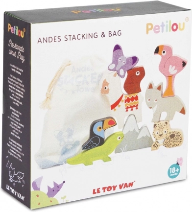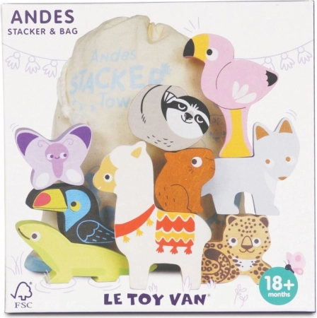Scoprite il fascino delle Ande con il set impilabile in legno LE TOY VAN, che sviluppa motricità fine, pazienza e gioco creativo. Gli animali colorati e le montagne in legno certificato FSC sono dipinti con vernici atossiche a base d’acqua, si adattano perfettamente alle mani dei bambini e, grazie al sacchetto in cotone, sono ideali anche in viaggio.