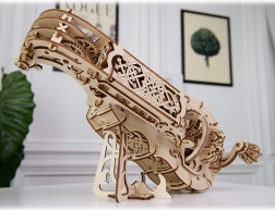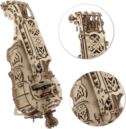 Questo eccezionale kit in legno unisce il divertimento del modellismo all’esperienza musicale. Ispirata all’arte medievale, la ghironda Ugears offre il moto di un ingranaggio planetario, ornamenti decorativi e soprattutto una reale suonabilità: lo strumento si attiva girando la manovella, si accorda con i piroli dotati di ingranaggi di riduzione e l’altezza del suono si controlla con sei tasti.