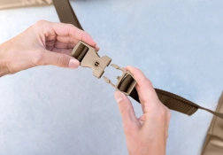 La fascia protettiva integrata con fibbia di sicurezza mantiene la copertura saldamente in posizione e aumenta la sicurezza contro aperture accidentali causate dal vento o dai bambini.