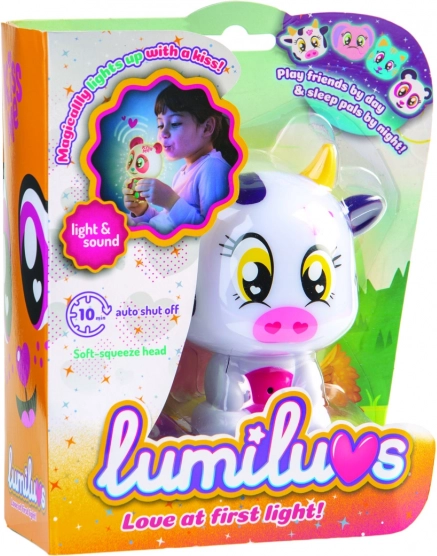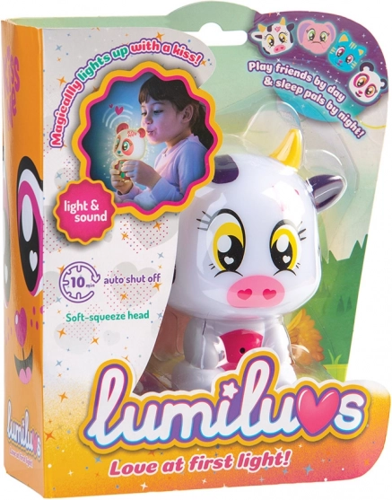 L’animaletto Lumiluvs si illumina e borbotta quando soffi sulla pancia e sul musino.