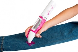 Strumento adatto per l'uso su tessuti grazie alla sua capacità di applicare con precisione elementi decorativi. Utilizzabile non solo su tessuti, ma anche su altre superfici.