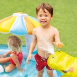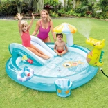 Porta ai tuoi bambini la gioia di una giornata estiva piena di acqua e divertimento con questa piscina gonfiabile per bambini del marchio INTEX. È dotata di scivolo, anello di gioco e fontana a spruzzo a forma di coccodrillo, che assicura un divertimento infinito nel gioco acquatico.