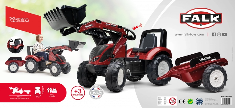 Trattore a pedali per bambini VALTRA con benna anteriore e rimorchio staccabile dai 3 anni