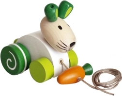 Questo coniglietto trainabile in legno motiva i bambini a camminare e a muoversi attivamente. Grazie alla lavorazione liscia e alla struttura robusta, il giocattolo è sicuro e piacevole da impugnare. La carota legata alla cordicella aggiunge un elemento di gioco divertente e stimola la fantasia dei più piccoli.