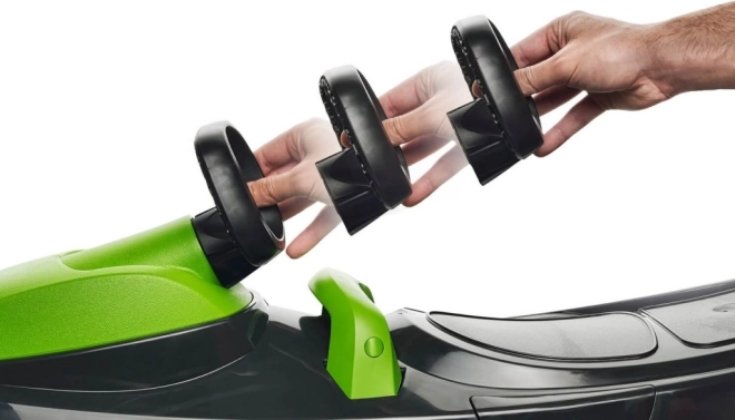 Dettagli pratici, come l'arganello automatico della fune di traino, semplificano la gestione in pista, mentre il freno massiccio con molla riporta in modo affidabile il pedale nella posizione iniziale. Con il montaggio rapido tramite meccanismo click-on, il bob è pronto all'uso in pochi istanti.