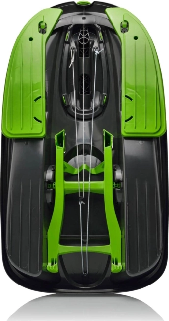 Il bob Stratos è progettato per offrire massimo controllo e sicurezza durante la discesa. Grazie all'ingegnoso sistema di sterzo con differenziale affronti le curve con facilità mantenendo una traiettoria stabile anche sulla neve più dura. La struttura robusta e le due postazioni di seduta garantiscono comfort anche durante corse più lunghe.