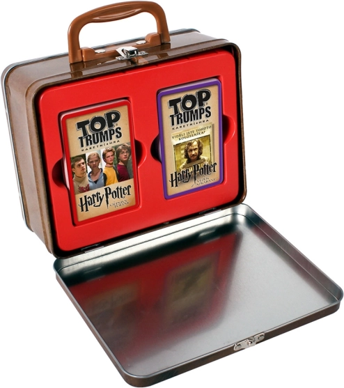 Intraprendi un viaggio magico attraverso il gioco Top Trumps con la licenza esclusiva di Harry Potter. Questo gioco ti permetterà di confrontare le caratteristiche dei tuoi personaggi preferiti e ampliare la tua collezione. L'edizione speciale include due mazzi di carte incentrati sui film Il Calice di Fuoco e Il Prigioniero di Azkaban, confezionati in un elegante cofanetto metallico di Grifondoro.