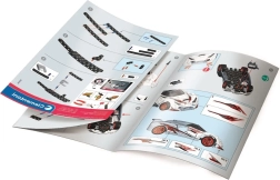 Il set include tutto il necessario per l’assemblaggio, compresi un manuale illustrato 3D e un’app di supporto con tre fasi di montaggio. Grazie al montaggio ripetibile, i bambini possono provare idee proprie, testare soluzioni e migliorare il design – non mancano gli adesivi per la decorazione dell’auto.