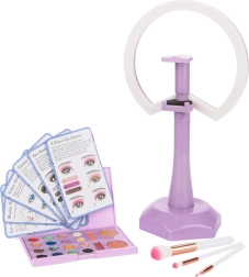 3 pennelli, palette di ombretti, rossetti, fard, luce LED, carte con istruzioni