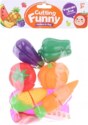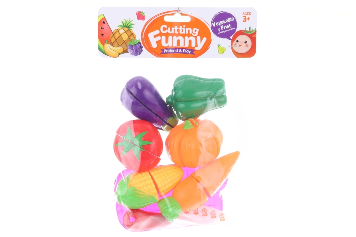 Divertente set in plastica di verdure da tagliare per piccoli chef. I singoli pezzi sono uniti all'interno con velcro, quindi possono essere tagliati e riattaccati ripetutamente. Un ottimo gioco per lo sviluppo della motricità fine e per imparare gli alimenti. La confezione contiene in totale 14 pezzi.