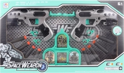 Divertiti con un'azione mozzafiato grazie alla coppia di pistole spaziali che sparano sicuri dardi in gommapiuma. La confezione include due pistole, 10 dardi in gommapiuma (5 con ventosa e 5 senza) e un controllo facile per bambini dai 6 anni in su. Perfette per gare di tiro, allenamento di mira e giochi di fantasia a tema spaziale.