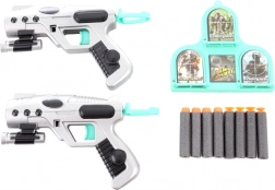 Con questo set di pistole spaziali i bambini si divertiranno con un tiro sicuro e avvincente grazie ai dardi in gommapiuma. Le due pistole in confezione permettono di giocare in coppia, fare gare o scenari cooperativi. Le dimensioni compatte garantiscono una presa comoda e una mira facile.