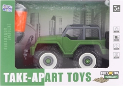 Divertente kit per piccoli tecnici: jeep di plastica avvitabile lunga 11 cm, facile da montare e smontare con il cacciavite incluso. Sostiene la motricità fine, il pensiero logico e il gioco creativo per bambini dai 3 anni.