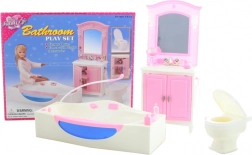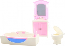 Offri ai giochi dei bambini un arredo realistico con il set bagno Glorie. Il set include un tavolino toilette con lavabo, una vasca e un WC in dimensioni per bambini, completati da accessori pratici come cosmetici, sapone e asciugamano. Realizzato in plastica resistente, adatto ai bambini dai 3 anni. La bambola non è inclusa nella confezione.