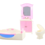 Il contenuto della confezione include il tavolino toilette con lavabo, la vasca e il WC, nonché piccoli accessori che ricreano l’atmosfera di un vero bagno. La realizzazione in plastica garantisce una facile manutenzione e una lunga durata nell’uso quotidiano.