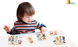 Grazie ai robusti pezzi in legno, perfetti per le mani dei bambini, i più piccoli allenano presa, coordinazione mano–occhio, concentrazione e abilità comunicative. Le illustrazioni sono chiare, colorate e motivano a giocare e ad apprendere nuove parole più e più volte.