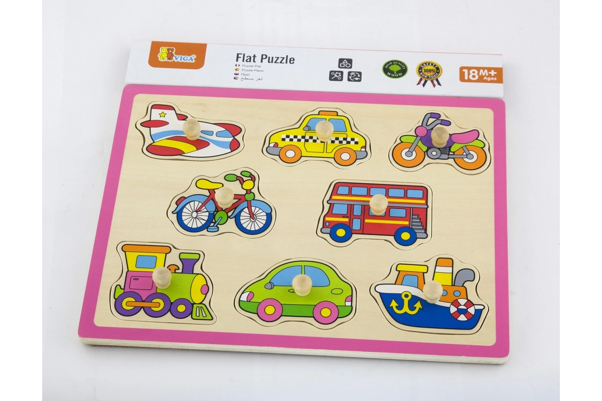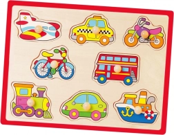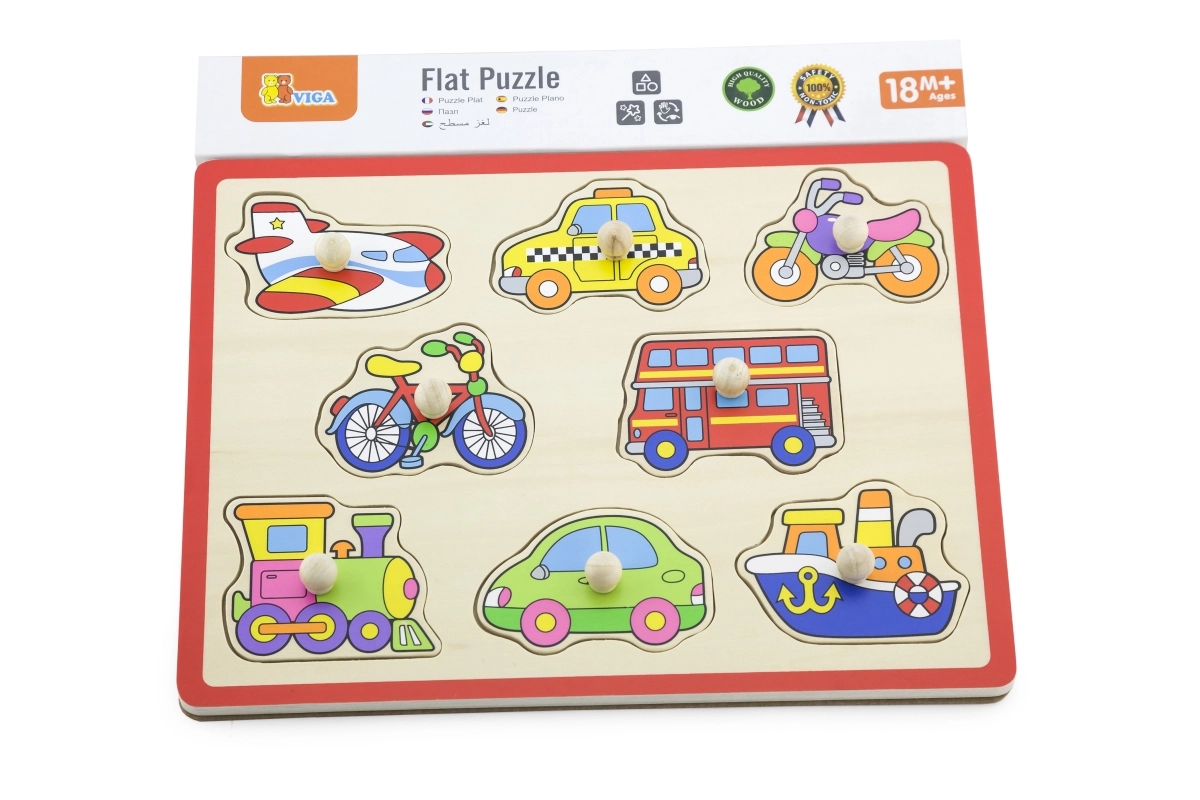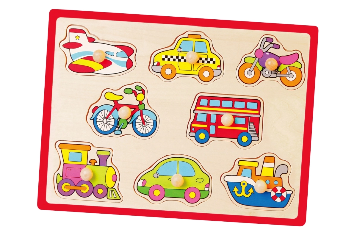 Questo puzzle a incastro in legno di alta qualità con soggetti di veicoli (aereo, taxi, bicicletta, autobus ecc.) offre un modo divertente di imparare. I pezzi con pratiche manopole si inseriscono negli appositi incavi, permettendo ai bambini di allenare naturalmente destrezza e pensiero logico. La robusta tavola in legno di circa 30 × 22,5 cm è resistente e adatta al gioco quotidiano.