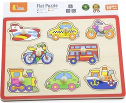 Il puzzle favorisce lo sviluppo del vocabolario, il riconoscimento di colori e forme e insegna a identificare i comuni mezzi di trasporto. I bordi lisci e la lavorazione sicura sono ideali per le piccole mani. La confezione pratica (circa 30 × 27 × 1 cm) facilita riporre e trasportare.