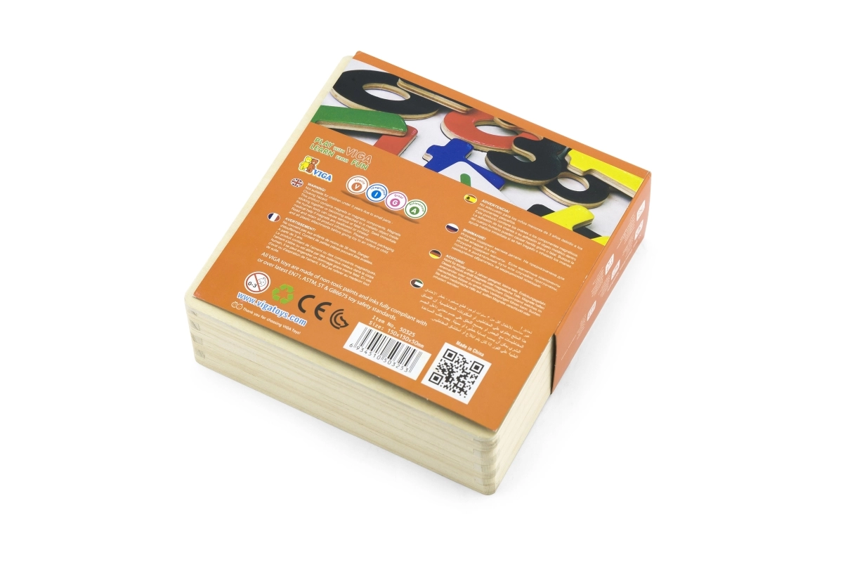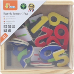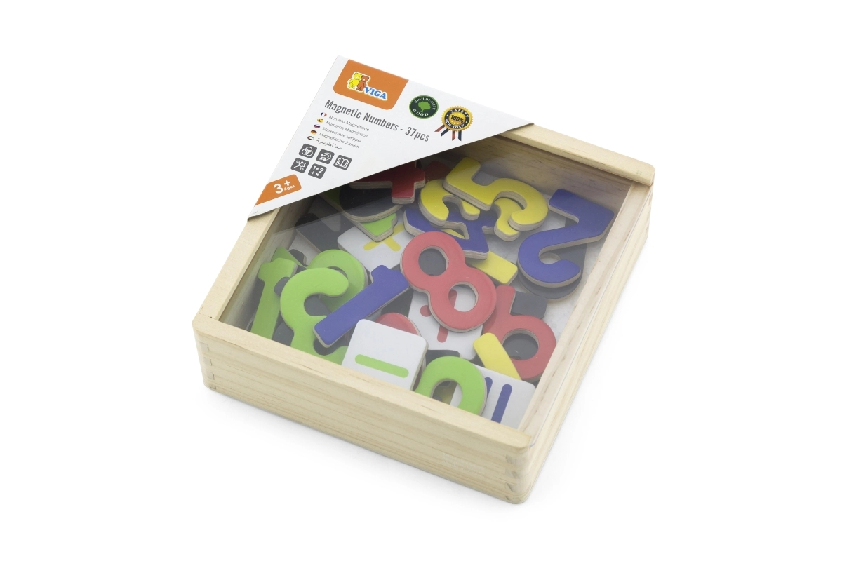 Contiene 37 pezzi – cifre e simboli matematici – che, grazie allo strato magnetico, aderiscono saldamente a lavagne o frigoriferi. La robusta struttura in legno multistrato e le superfici laccate e lisce garantiscono lunga durata e una presa comoda per le mani dei bambini.