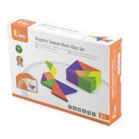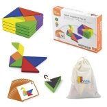 Questo colorato tangram in legno è uno strumento ideale sia per il gioco in casa che per la didattica prescolare. I bambini compongono immagini seguendo le carte incluse o la propria fantasia, sviluppando immaginazione spaziale, creatività e capacità di problem solving. I pezzi in legno massello, accuratamente levigati, sono piacevoli da maneggiare e resistenti all’uso quotidiano.