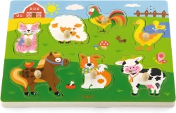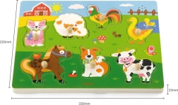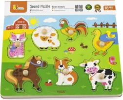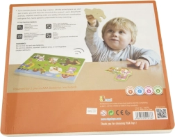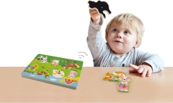 Puzzle in legno con animali, versione sonora. Inserendo l’animale corretto si attiva il suono che l’animale emette. Dimensioni della tavola: circa 30 x 22,5 x 2 cm. Alimentazione: 2 x batterie AAA (non incluse). Dimensioni della confezione: circa 30 x 27 x 2 cm. Età: 18 mesi e oltre.