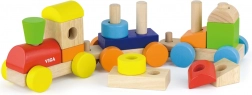 Scopri un gioco in legno senza tempo che unisce divertimento e apprendimento. Il treno impilabile VIGA è composto da una locomotiva e due vagoni con blocchi colorati che possono essere riorganizzati a piacere. I bambini esercitano la coordinazione occhio-mano, il pensiero logico e il riconoscimento di colori e forme.