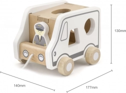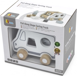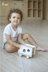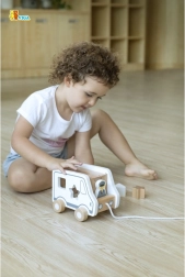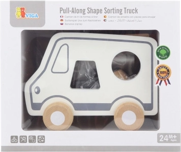 Questo gioco trainabile in legno a forma di camion combina due attività amate: trainare con la cordicella e inserire le forme. I bambini sviluppano il riconoscimento delle forme e la percezione spaziale, divertendosi con il movimento e il gioco di fantasia con un dolce camioncino.