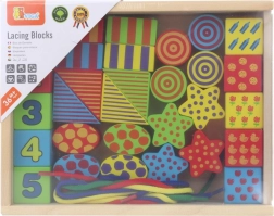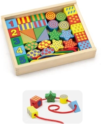 Scopri il gioco creativo con il set di infilatura in legno VIGA – una scatola piena di forme colorate da infilare sui laccetti come perline. Sostiene la motricità fine, la coordinazione mano–occhio e l’apprendimento di colori e forme. Pezzi in legno di qualità con vernici atossiche e dimensioni grandi per una presa sicura.