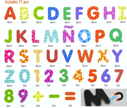 Gli elementi aderiscono alla lavagna magnetica, al frigorifero o ad altre superfici metalliche. Perfetti per l’esercizio quotidiano e il gioco libero.