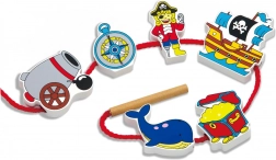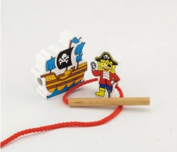 Scopri la magia dell’avventura piratesca con un set in legno di qualità per infilare. I blocchi colorati con motivi come pirata, nave o ancora incoraggiano i bambini a creare e aiutano ad allenare naturalmente la presa, la concentrazione e la pazienza. Grazie all’infilatura sul cordino i bambini esercitano precisione e coordinazione divertendosi.