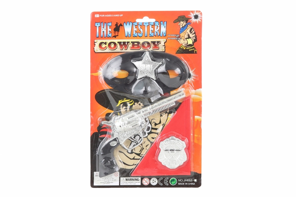 Set western completo per piccoli avventurieri con tutto ciò di cui un piccolo sceriffo ha bisogno per le sue spedizioni. Include una pistola, un distintivo, una stella da sceriffo, un foulard e una mascherina. Ideale per il gioco creativo e i travestimenti. Adatto ai bambini dai 3 anni.