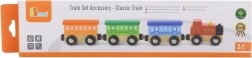 Il set in legno Trenino classico comprende 4 parti, collegate tra loro da magneti. Questo giocattolo è stato progettato dal rinomato produttore di giocattoli in legno, Viga Toys. Il set può essere utilizzato come giocattolo autonomo o come complemento per altre piste per trenini, costruzioni e set.