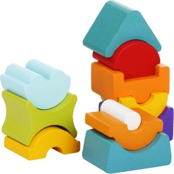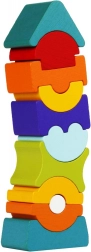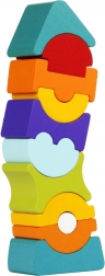 I pezzi arrotondati permettono di costruire la torre in verticale o inclinata. I bambini esercitano pazienza, coordinazione e percezione spaziale a ogni tentativo.