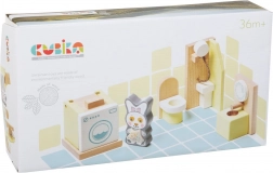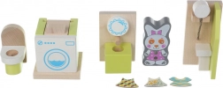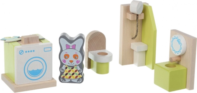 Il set di mobili in legno per bambole "Bagno" è una scelta ideale per lo sviluppo delle capacità sensomotorie e della creatività dei bambini. Questo set di 8 pezzi comprende: