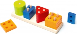 Questo puzzle in legno di alta qualità offre 16 forme geometriche colorate da infilare sui piolini di una base rettangolare. Durante il gioco i bambini imparano a riconoscere colori e forme, sperimentano diverse combinazioni e allenano in modo naturale coordinazione e pazienza.