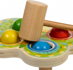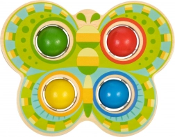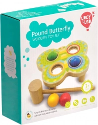 Divertente martello di legno a forma di farfalla con quattro palline colorate che sviluppa la motricità fine, la coordinazione occhio–mano e la concentrazione. I bambini usano il martellino per inserire le palline nei fori del colore corrispondente: un giocattolo sicuro, resistente e visivamente accattivante in legno naturale.