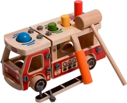 Questo set creativo unisce un kit di costruzione e un banco da martellare in uno. I bambini prima assemblano un robusto camion dei pompieri in legno e poi sfruttano i quattro fori sul cassone per martellare divertenti elementi colorati. Grazie ai colori vivaci e alle forme varie, il giocattolo favorisce l’apprendimento naturale e la concentrazione.