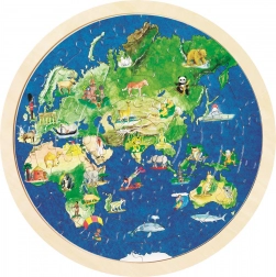 Scopri il mondo in modo giocoso con il puzzle in legno bifacciale GOKI da 57 pezzi. Il puzzle rotondo con mappa del mondo su entrambi i lati offre lavorazione di qualità, illustrazioni educative e facile assemblaggio grazie al bordo fresato. Ottimo per sviluppare motricità fine, pensiero logico e consapevolezza geografica.