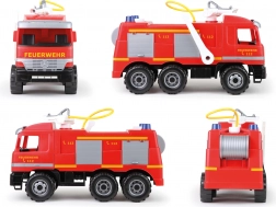 L'autopompa di LENA offre ai piccoli pompieri tanto divertimento e possibilità di gioco. Questo modello dispone di uno spazio di stivaggio laterale e di un serbatoio d'acqua da 1,5 litri, il che aumenta il realismo del gioco. Realizzato in materiali di qualità, soddisfa gli standard europei e ha la certificazione CE.
