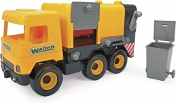 Il camion ha un caricatore posteriore funzionante che facilita il carico e lo svuotamento dei “rifiuti” dal bidone incluso. Il vivace colore giallo con dettagli neri e le sei ruote garantiscono stabilità e un movimento fluido su diverse superfici.