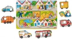 Questo colorato puzzle per bambini con veicoli è progettato per far scoprire ai piccoli nuove conoscenze. Ogni pezzo ha una cavità rotonda per un facile prelievo e nasconde un'altra immagine che appare una volta rimosso. I bambini saranno entusiasti di scoprire e divertirsi a parlare di ciò che accade per strada.