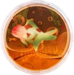 Questo muco trasparente contiene un piccolo pesciolino che sembra vivo. Conservato in una scatola compatta che si adatta facilmente su scrivania, armadio o scaffale.