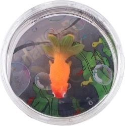 Contenitore trasparente compatto con un pesciolino dall'aspetto realistico e elementi decorativi per un piacere visivo.