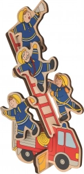 Il Puzzle in legno Vigili del Fuoco del marchio GOKI offre ai bambini la possibilità di inserire pezzi in una base in legno o di creare un modello spaziale di un intervento dei vigili del fuoco. Il giocattolo supporta: