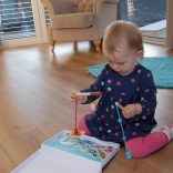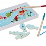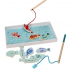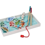 Durante il gioco il bambino utilizza una canna in legno con magnete, favorendo lo sviluppo della coordinazione occhio-mano e della motricità fine.