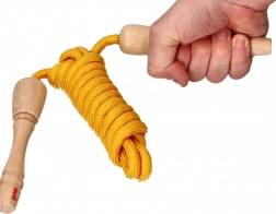 Questa corda per saltare è un ottimo strumento di allenamento per chiunque desideri esercitare tutto il corpo, migliorare la coordinazione dei movimenti e aumentare l'agilità. Grazie ai manici in legno verniciato, la manipolazione è facile e piacevole.